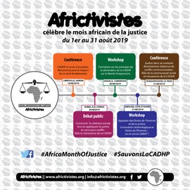 In its program ICT4Justice [ICT for Justice], AFRICTIVISTES celebrates the Africa Month of Justice. This year, all 31 days of August 2019 are dedicated to #AfricaMonthOfJustice. It is an opportunity for Africtivistes to speak about justice issues from a human rights perspective. Africa Month of Justice is also a set of activities of reflection, information and sharing all over the African continent.