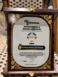 The 2024 AfricTivistes Champion of Governance and Democracy initiative was concluded on the sidelines of the Drive for Democracy Indaba, held in Johannesburg, South Africa. On 24 November, Thuli Madonsela was presented with the award in recognition of her exceptional contributions to the promotion of human rights and social justice in South Africa.